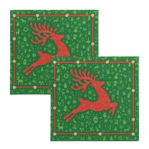 Guardanapo de Natal Estampado Verde e Vermelho Rena 25x25cm Folha Dupla 40 Unidades