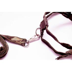 Peitoral de nylon 25 mm xadrez camuflado com fivela de metal; Guia de nylon 25 mm xadrez; Mosquetão com trava de segurança; Cor camuflado. Tamanho: nº 5. Praticidade, conforme para seu pet de pequeno a médio porte. Passei com estilo e elegância. Medidas aproximadas: Pescoço 45 cm. Tórax 50 à 60 cm. Guia 85cm. Marca: Nica pet Ean: 7430794188173