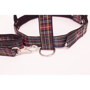 Peitoral de nylon 40 mm xadrez preto e com fivela de metal; Guia de nylon 40 mm xadrez; Mosquetão com trava de segurança; Cor : preto. Tamanho: nº 10. Praticidade, conforme para seu pet de médio e grande porte. Passei com estilo e elegância. Medidas aproximadas: Pescoço 69 cm. Tórax 77 à 93 cm. Guia 60 cm. Marca: Nica pet
