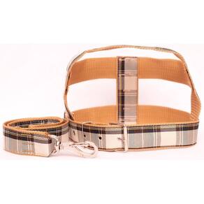 Peitoral de nylon 40 mm xadrez marrom e com fivela de metal; Guia de nylon 40 mm xadrez; Mosquetão com trava de segurança; Cor : marrom. Tamanho: nº 10. Praticidade, conforme para seu pet de médio e grande porte. Passei com estilo e elegância. Medidas aproximadas: Pescoço 69 cm. Tórax 77 à 93 cm. Guia 60 cm. Marca: Nica pet