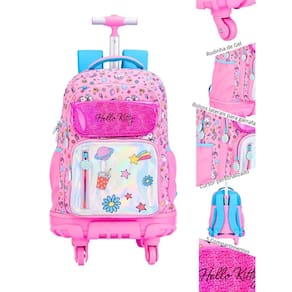 Kit Hello Kitty Metallic Mochila 4 Roda + Estojo Box Luxo