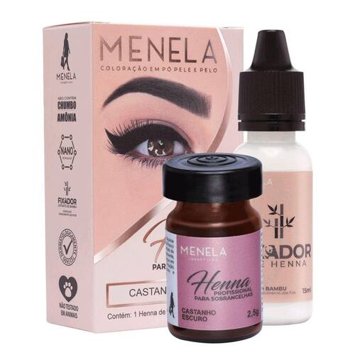 Henna para Sobrancelhas Menela Desenvolvida com nanotecnologia, ela pigmenta as camadas mais profundas da pele e dos pelos - até mesmo os brancos - com fixação e intensidade, garantindo um design marcante e duradouro. É referência em performance, rendimento e segurança para quem exige o melhor. Benefícios e características da Henna Menela: Alta pigmentação desde o primeiro minuto Cobre até pelos brancos com intensidade Rendimento superior: até 60 aplicações por pote Duração de até 15 dias na pele Brilho natural e realce do desenho Aplicação rápida: de 1 a 20 minutos Praticidade com batoque integrado Fácil preparo e Dermatologicamente testada e aprovada pela ANVISA Não contém Cinza, amônia, parabenos, peróxido de hidrogênio, iodo nem metais pesados Produto Cruelty Free Tecnologia Avançada com Nanotecnologia: profunda na pele e nos fios Fixação superior, com mais definição e intensidade Liberação inteligente de ativos durante o uso Menor risco de irritação, ideal para peles sensíveis Nutrição dos fios: crescimento fortalecido Textura cremosa para aplicação precisa Resultados mais rápidos e visíveis Fixador com Extrato de Bambu - benefícios exclusivos: Fortalece os fios com sílica natural Estimula o crescimento das sobrancelhas Hidrata e proporciona brilho natural Protege e regenera a pele da região Potencializa a fixação da henna na pele Textura leve e sensação refrescante Prolonga a durabilidade da coloração O que vem no Kit Henna Menela: 1 Henna Menela 2,5g com batoque integrado 1 Fixador com Extrato de Bambu 15ml 1 Pá dosadora/medidora Modo de Preparo e Aplicação: Higienize as sobrancelhas, removendo oleosidade e impurezas. Agite bem o fixador antes de usar. Misture 1 pá de henna com 15 a 25 gotas do fixador até obter a consistência ideal uso de mixer é recomendado . Aplique com pincel apropriado e deixe agir de 1 a 20 minutos. Remova com algodão umedecido em água mineral. Marca: Não Informado Ean: 7891356143670