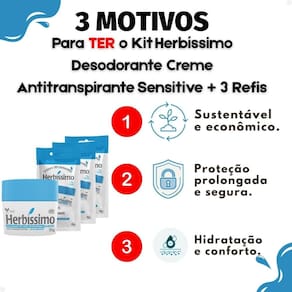 Perfeito para o uso diário, o Kit Herbíssimo Sensitive é a escolha ideal para quem busca proteção duradoura e cuidado especial para as axilas, seja na rotina de trabalho, atividades físicas ou momentos de lazer. Sua fórmula suave é especialmente indicada para pessoas com peles sensíveis que necessitam de hidratação e proteção contínua. Ideal para usar após a depilação, em viagens ou em qualquer situação que exija proteção extra e conforto.