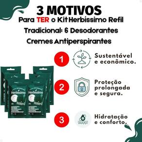 O Desodorante Em Creme Refil Herbíssimo Tradicional Antiperspirante 45g é perfeito para todas as ocasiões: desde o trabalho e a prática de esportes até os momentos de lazer e relaxamento. Leve-o sempre com você na bolsa ou mochila, garantindo proteção e frescor em qualquer situação. Ideal para usar após o banho ou sempre que sentir necessidade de reforçar a proteção contra o odor e a transpiração.