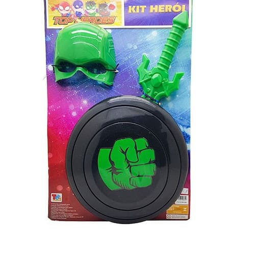 Kit Herói Verde Com Mascara E Espada E Escudo Toda criança gosta de usar a imaginação, e esse brinquedo é perfeito para a criançada brincar de faz de conta que é o seu super-herói favorito INMETRO Ocan-bri- 0137/19-8 Nm 300/2002 Composição plástico Cores: verde Ean: 7908071503310
