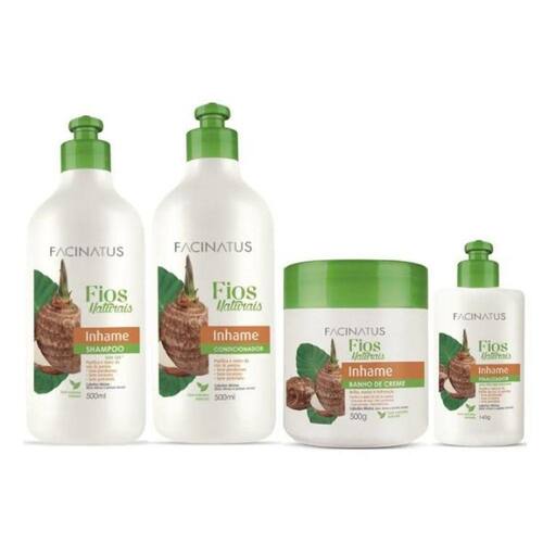 Kit Inhame Facinatus Cosméticos Cabelos Mistos raiz oleosa e pontas secas O Kit Inhame com extrato naturais purifica e nutre da raiz ás pontas. Com ativos desintoxicantes e cera de soja que hidrata profundamente os fios, aumentando a resistência e movimento. Proporcionando brilho, maciez e hidratação.Indicado para cabelos Mistos raiz oleosa e pontas secas Sem parabenos Sem corantesSem petrolatoProduto notificado na ANVISA.Produto a pronta entrega. Envio imediatoEmpacotamento: O produto é lacrado direto da indústria, e reforçado com fita adesiva, para suportar o transporte sem vazamento, empacotada e reforçada com caixa de papelão, para que seu pacote chegue intacto pronto para uso ou revendaSeu pedido contém: 1 Shampoo sem sal 500 ml1 Condicionado 500 ml1 Banho de Creme 500 g1 Finalizador Anti Frizz 140 g Marca: Facinatus Cosméticos