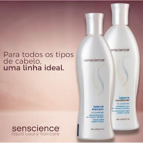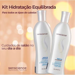 Contém: Senscience balance - shampoo 300ml: shampoo para cabelos saudáveis e normais. Limpa gentilmente, ajudando a manter a saúde e a hidratação dos fios. Ideal para o uso diário, ele deixa o cabelo muito mais maleável e bonito, sem acumular resíduos. Senscience balance conditioner - condicionador 300ml: condicionador para cabelos saudáveis e normais. Desembaraça e condiciona, mantendo o brilho e a maciez dos fios. Ele equilibra a saúde a hidratação dos fios, para um cabelo naturalmente bonito e saudável.