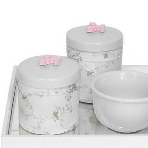 Kit higiene bandeja porcelanas espelho flor liz rosa bebê