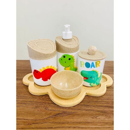 Kit Organizador para bebê c/bandeja Cor do Pote: BRANCO PADRÃO MATERIAL DOS POTES: ACRÍLICO MATERIAL DA BANDEJA: MDF Kit acompanha: - 1 bandeja de madeira em MDF - 1 porta sabonete / álcool gel - 1 molheira - 1 porta algodão - 1 porta cotonete MEDIDAS DA BANDEJA EM MDF: Diâmetro: 30x22cm MEDIDA DOS POTES: Porta algodão/cotonete: 8x10,5 cm Porta sabonete líquido: 12x21 cm Molheira: 8x5 cm Ean: 7898901266402