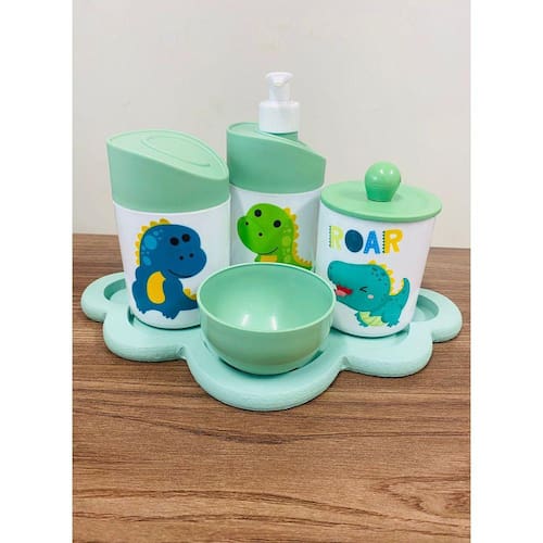Kit Organizador para bebê c/bandeja Cor dos Potes: BRANCO PADRÃO MATERIAL DOS POTES: ACRÍLICO MATERIAL DA BANDEJA: MDF Kit acompanha: - 1 bandeja de madeira em MDF - 1 porta sabonete / álcool gel - 1 molheira - 1 porta algodão - 1 porta cotonete MEDIDAS DA BANDEJA EM MDF: Diâmetro: 30x22 cm MEDIDA DOS POTES: Porta algodão/cotonete: 8x10,5 cm Porta sabonete líquido: 12x21 cm Molheira: 8x5 cm Ean: 7898901200178