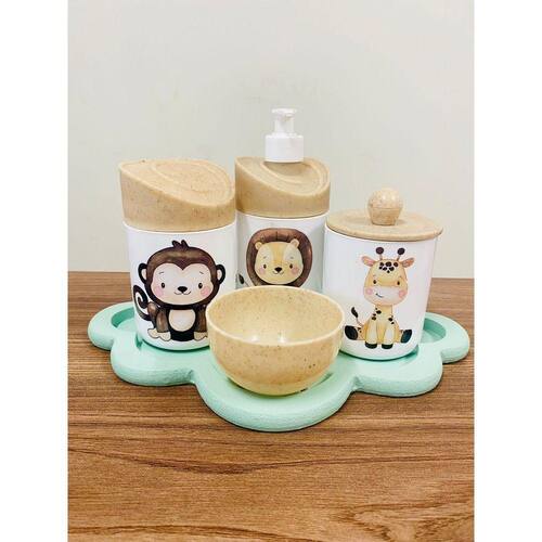 Kit Organizador para bebê c/bandeja Cor dos Potes: BRANCO PADRÃO MATERIAL DOS POTES: ACRÍLICO MATERIAL DA BANDEJA: MDF Kit acompanha: - 1 bandeja de madeira em MDF - 1 porta sabonete / álcool gel - 1 molheira - 1 porta algodão - 1 porta cotonete MEDIDAS DA BANDEJA EM MDF: Diâmetro: 30x22 cm MEDIDA DOS POTES: Porta algodão/cotonete: 8x10,5 cm Porta sabonete líquido: 12x21 cm Molheira: 8x5 cm Ean: 7898901200208