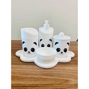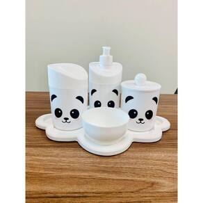 Kit Organizador para bebê c/bandeja em MDF. Cor do Pote: BRANCO PADRÃO Tampas: BRANCO MATERIAL DOS POTES: ACRÍLICO MATERIAL DA BANDEJA: MDF Kit acompanha: - 1 bandeja de madeira em MDF. - 1 porta sabonete / álcool gel - 1 molheira - 1 porta algodão - 1 porta cotonete MEDIDAS DA BANDEJA EM MDF: Diâmetro: 19,5x19 cm Altura: 5x8cm MEDIDA DOS POTES: Porta algodão/cotonete: 8x10,5 cm Porta sabonete líquido: 12x21 cm Molheira: 8x5 cm Marca: Doya Kids