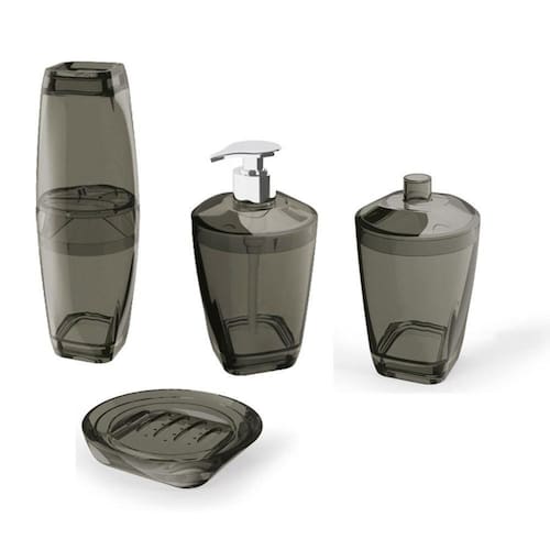 Kit Higiene Para Banheiro 4 Peças Com Porta Escova Uz Preto Kit Higiene Banheiro 4 Peças Porta Escova Sabonete Líquido Porta Algodão E Saboneteira Premium Uz A UZ oferece lindos kits com embalagens especiais, perfeitos para a sua casa. O Kit higiene UZ é produzido com plástico Poliestireno Cristal e pigmentos de coloração sólida , que é super resistente e durável e é ótimo para deixar seu banheiro lindo. Além de design arrojado, os produtos UZ possuem superfície interna lisa que facilita a lavagem. São fabricados em material altamente resistente. A UZ Utilidades é uma marca especialista em produtos que atendem as necessidades do consumidor, aliando funcionalidade e versatilidade. As linhas Servir, Organizar, Higienizar, Baby e Decorar foram pensadas para garantir mais praticidade ao dia a dia e uma casa muito mais completa. O Kit Banheiro Premium possui um design moderno e arrojado, ideal para organizar e deixar o seu banheiro cheio de estilo. É produzido em material transparente que garante a elegância do produto, além de facilitar a visualização do conteúdo interno. O KIT ACOMPANHA:01 unidade Porta Algodão Premium 13,3 cm x 8,0 cm x 8,0 cm01 unidade Porta Sabonete Líquido Premium 15,8 x 8,0 x 8,0 cm01 unidade Saboneteira Premium 2,3 cm x 10,8 cm x 10,8 cm01 unidade Porta Escova com Tampa Premium 23,0 x 8,0 x 8,0 cm INFORMAÇÕES:Origem: NacionalTipo: Kit Banheiro Premium Marca: Uz UtilidadesModelo: Premium Referência: UZ532 Material/composição: Poliestireno Cristal e pigmentos de coloração sólida CARACTERÍSTICAS:TransparênciaMaterial 100% reciclável e atóxicoAltamente resistente. Informações: Lavar com Sabão neutroResiste a mudança de temperaturaAlta resistência a impactosParede com espessura reforçada Recomendações e Orientações:Antes da primeira utilização, lave e seque bem as peçasPara limpeza, use somente esponja macia e detergente neutroNão utilize materiais abrasivosCom o uso, é normal que apareçam riscos tanto interno quanto externoPara descarte dos produtos e embalagens siga as orientações de reciclagem vigentes