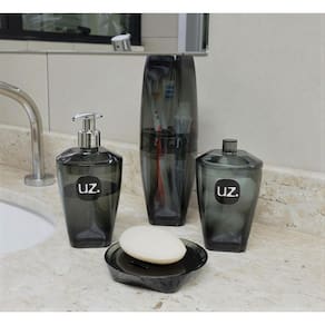 Kit Higiene Para Banheiro 4 Peças Com Porta Escova Uz Preto