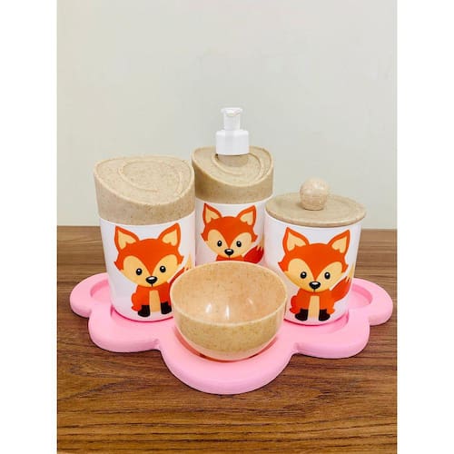 Kit Organizador para bebê c/bandeja Cor do Pote: BRANCO PADRÃO MATERIAL DOS POTES: ACRÍLICO MATERIAL DA BANDEJA: MDF Kit acompanha: - 1 bandeja de madeira em MDF - 1 porta sabonete / álcool gel - 1 molheira - 1 porta algodão - 1 porta cotonete MEDIDAS DA BANDEJA EM MDF: Diâmetro: 30x22cm MEDIDA DOS POTES: Porta algodão/cotonete: 8x10,5 cm Porta sabonete líquido: 12x21 cm Molheira: 8x5 cm
