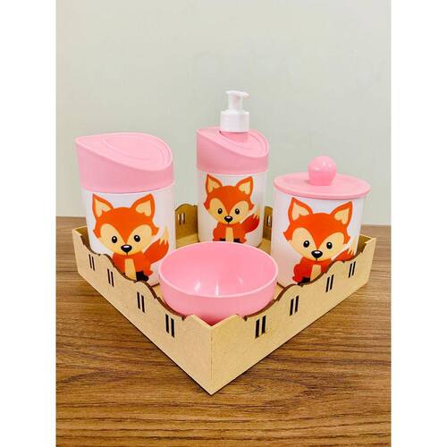 Kit Organizador para bebê c/bandeja Cor dos Potes: BRANCO PADRÃO MATERIAL DOS POTES: ACRÍLICO MATERIAL DA BANDEJA: MDF Kit acompanha: - 1 bandeja de madeira em MDF - 1 porta sabonete / álcool gel - 1 molheira - 1 porta algodão - 1 porta cotonete MEDIDAS DA BANDEJA EM MDF: Diâmetro: 20x20cm MEDIDA DOS POTES: Porta algodão/cotonete: 8x10,5 cm Porta sabonete líquido: 12x21 cm Molheira: 8x5 cm Ean: 7898901271864