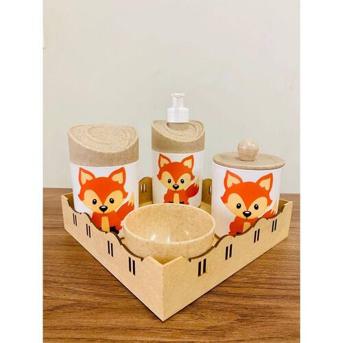 Kit Higiene Raposinha Baby c/bandeja quadrada crua