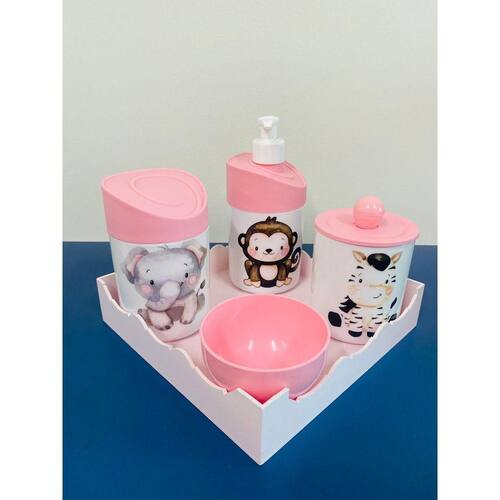 Kit Higiene Safari c/bandeja Color (Macaco, Zebra, Tigre)
