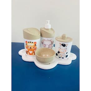 Kit Higiene Safari c/bandeja Nuvem Crua (Elefante, Zebra, Tigre)