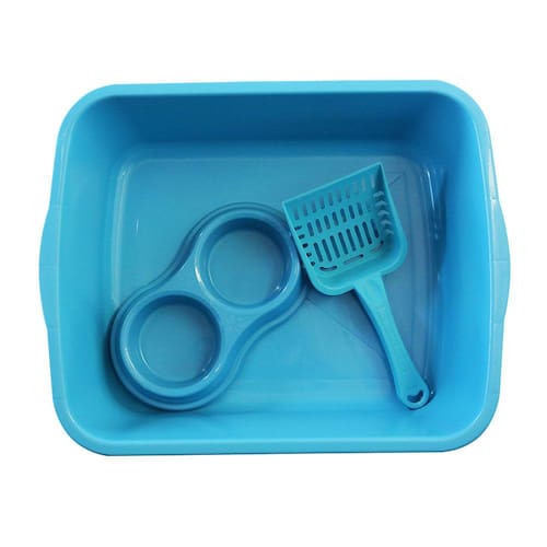 Kit Higiênico Gatos Elite Azul Bandeja + Pá + Comedouro - Indicado para gatos; - Reduz a sujeira; - Prático para limpeza; - Acompanha 1 comedouro duplo; - Acompanha 1 pá. O Kit Higiênico Gatos Elite Azul Bandeja + Pá + Comedouro proporciona mais limpeza e praticidade. Além de ajudar na organização da sua casa, o produto também oferece ao seu gatinho a privacidade que ele precisa para realizar suas necessidades no local correto. Este modelo é higiênico, diminui odores, garante uma limpeza prática e ainda possui uma pá coletora e um comedouro duplo. Medidas aproximadas Altura:15cm Largura: 38cm Profundidade: 46cm