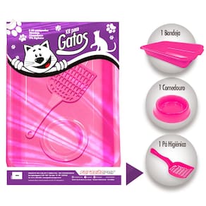 O conjunto é composto por uma bandeja e uma pá, que foram pensadas especialmente para promover limpeza e higiene sanitária para seu gato, além de um comedouro com capacidade para 200ml.