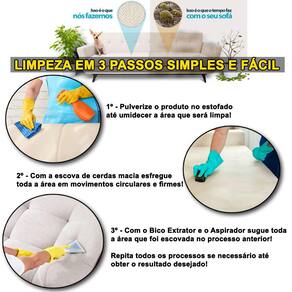 Modo de usar: O produto por estar concentrado deve ser diluído conforme escrito no galão , para o Limpa Estofado a diluição para uso é de 1x10 ( 100ml de produto para 1 litro de agua ) molhar o sofá com o pulverizador de mão , após aplicar o produto esfregar com a escola manual e depois sugar com o aspirador de Higienização até sair toda sujeira , Deixar secar na sombra por aproximadamente 2h.