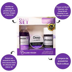 O Kit Higienizador de Acessórios Clean Set é o trio que possui um Brush Cleanser, um Deep Brush Cleanser e um Sponge Cleanser!