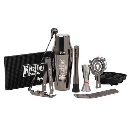 Kit Home Bar Ketel One 17 Peças Edição Limitada Transforme a sua casa em uma balada VIP com o Kit Home Bar Gipsy Ketel One. Se você é um apaixonado por drinks e adora uma comemoração com os amigos, esse kit é perfeito para você. Com uma parceria de sucesso entre a coleção Gipsy Collabs e a marca premium Ketel One, você terá tudo o que precisa para preparar drinks incríveis em casa. E não precisa se preocupar com a falta de utensílios, pois o Kit Home Bar Gipsy Ketel One inclui todos os acessórios que você precisa, desde o dosador até o tapete escorredor. Então, já sabe, é hora de sair da mesmice e colocar a criatividade em ação!