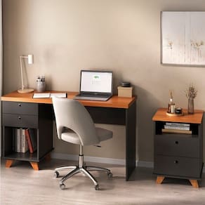 O Conjunto Home Office Sky + Gaveteiro Day traz uma harmonização perfeita entre design retrô e personalidade. A combinação do Preto com Freijó cria um contraste elegante, que transmite modernidade e aconchego ao mesmo tempo. Pensado para quem busca beleza e funcionalidade, o conjunto oferece amplo espaço para organização com suas diversas gavetas, ideais para manter documentos, livros, materiais e objetos pessoais sempre à mão. A escrivaninha conta com linhas leves e um tampo espaçoso que favorece o conforto durante o trabalho ou estudo, enquanto o gaveteiro complementa o ambiente com praticidade e estilo. Um conjunto sofisticado, funcional e cheio de charme para inspirar sua rotina. Possui Portas: Não Acabamento: BP Possui Rodízio: Não Altura do Conjunto: 75 cm Ambiente: null Ambiente Principal: Escritório Cor: Freijó/Preto Informação Complementar: 1x Gaveteiro Retrô e Multifuncional com 2 Gavetas 1 Nicho Day Freijó/Preto Largura: 45.2 Altura: 63 Peso: 10.2 Profundidade: 45.2 Necessita Montagem: Sim