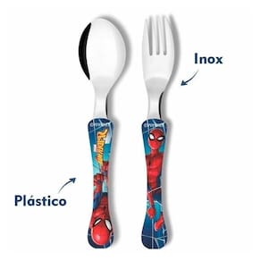 Faqueiro com 2 peças com o tema Homem Aranha kids Linha Tematica Composto por: 1 colher de mesa 1 garfo de mesa