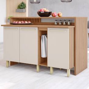 Kit Ilha Gourmet com Balcões 80cm, 40cm e Porta Toalha Requinte - Móveis Henn