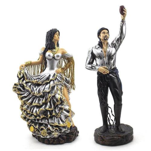 Kit Imagem Casal Cigano Luxo Prata Resina Médio Ciganos: Conhecidos por serem um povo nômade, faz deles entidades que ajudam nas mudanças na vida das pessoas. Dimensões: cigana W8C2SKQ8H - Altura: 26 cm - Largura: 15 cm - Profundidade: 15 cm Cigano EVYTU6WD4 - Altura: 32 cm - Largura: 10 cm - Profundidade: 10 cm Dimensões aproximadas do produto. Produto feito a mão, podendo sofrer variações de cores. Camasi, guimarães, guimaraes, Marca: Camasi Guimarães Ean: 7890499241403