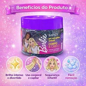 Nome do Produto: Kit Impala Barbie: 3 Gel Glitter Cabelo e Corpo 120g