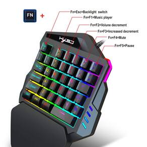 Teclado: Recursos luminosos. A função de luz de fundo do teclado. Mouse: A luz respirável de 7 cores traz ao usuário uma experiência de jogo legal. 7 botões para operações mais convenientes, chave de fogo para ataque triplo. Linha de nylon tecida de duas cores com anel eletromagnético anties, durável e anti-interferência. 5 DPI ajustáveis para escolher, controle mais livre. Superfície ergonômica, sensação de mão confortável, reduzir a fadiga.