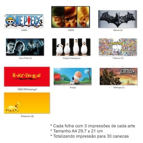 Kit Impressão Folha Sublimática para Canecas Animes e Desenhos - A4 - 10 folhas Kit Impressão Folha Sublimática para Canecas Animes e Desenhos - A4 - 10 folhas