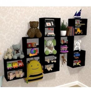 Kit Infantil 4 Nichos Cubo com Prateleira Lema Kit Cubos Baby Espresso Móveis Preto. Esse nicho com design moderno e funcional, é conhecido na decoração como uma peça \"coringa\" porque pode ser valorizada em qualquer ambiente, pode ser usada no seu quarto, no quarto das crianças, na sala, cozinha, área de serviço, banheiro, escritório, enfim, em diversos ambientes. Pode ser utilizado para decorar pequenos ambientes com praticidade, e aproveitar todos os espaços da sua casa. É perfeito para expor suas coleções ou brinquedo das crianças, ou ainda valorizar os seus livros e decorações. Ean: 7908149903103