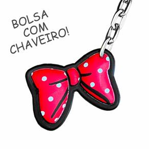 A bolsa é feita em material sintético estampado. Com alça regulável, reforçada e sem forro interno. Ela vem com um lindo chaveirinho! Seu fechamento é com zíper. Medidas: 15CM x 5CM x 15 CM.