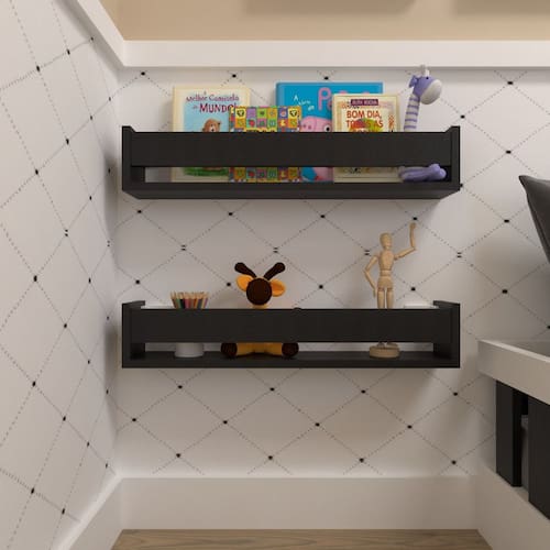 Kit Infantil com 2 Prateleiras Para Livros e Decoração Preto