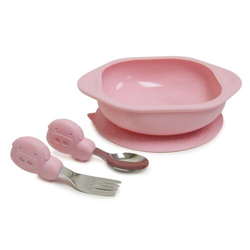 Temos o conjunto completo para ajudar nesse momento: o Kit com Tigela e Primeiro Garfo e Colher da Marcus & Marcus.