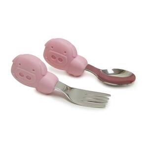 Os talheres do 1° Jogo de Colher e Garfo possuem um cabo texturizado que facilita a pega pela criança.