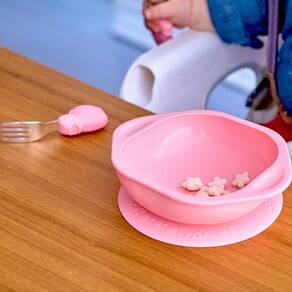 A tigela com sucção ficará fixa firmemente na mesa para que o bebê não consiga levantá-la e nem derrubar a comida de dentro dela.