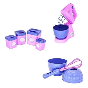 o kit vem com geladeira, microondas e fogão com panelas, air fryer, cafeteira com cápsula, batedeira, forminhas com acessório , liquidificador, potinhos para mantimentos, panelinha de pressão, xícaras e bulê, frutinhas que se dividem, comidinhas, louças