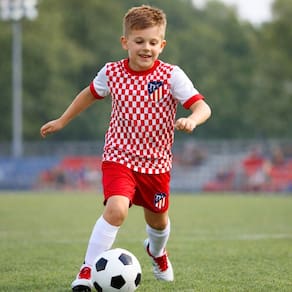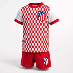 Características: - Composição: 100% Poliéster - Clube: Altético de Madrid - Escudo: Estampado - Origem: Nacional - Idade: Infantil - Manga: Curta - Gola: Careca - Bolso: Não - Forro: Não