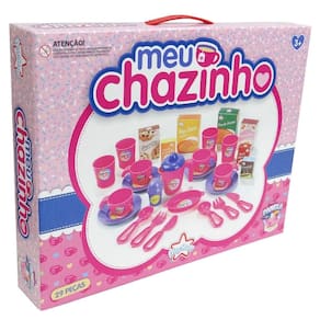 Kit Infantil Meu Chazinho 29 Itens Big Star 269 Com o Kit Meu Chazinho da Big Star as crianças vão preparar as mais saborosas brincadeiras. Um jogo completo de peças de cozinha que incluí jarra, xícaras, pires, talheres e diversas caixinhas de sabores diferentes para elas prepararem um delicioso chá.
