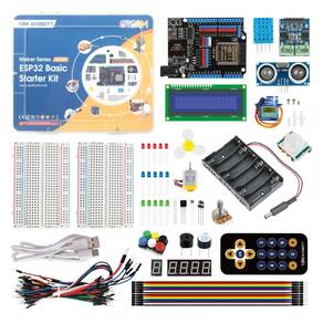 O ACEBOTT Basic Starter Kit for ESP32 QE200 é um kit educativo de eletrônica e programação com 96 itens, desenvolvido para introduzir projetos com ESP32 em diferentes níveis, desde montagens básicas até aplicações de automação e multimídia. O conjunto inclui uma placa ESP32 Development Board Max V1.0, módulos e componentes eletrônicos diversos, além de mais de 40 vídeo-aulas que mostram passo a passo como montar circuitos e programar no Arduino IDE e em Scratch. Os tutoriais abordam desde uso de LEDs e sensores simples até controle de módulos como DHT11 e RGB, permitindo construir projetos de IoT, casa inteligente e experimentos interativos com estruturas em madeira expansíveis.
