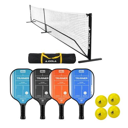 - Kit de Pickleball JOOLA com 4 Raquetes para Treinamento - 1 Rede de Pickleball JOOLA Elemental - 4 Bolas de Pickleball JOOLA Primo