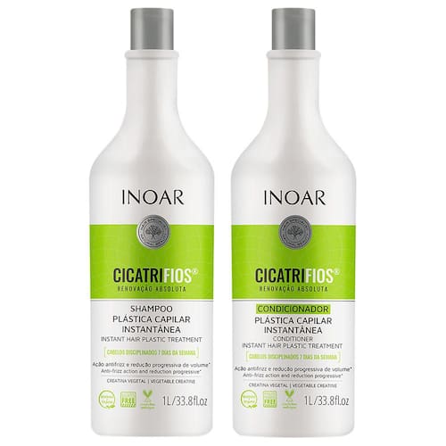 Inoar Cicatrifios - Condicionador 1000ml: hidrata intensamente, ajudando a selar os fios. Proporciona benefícios da plástica capilar para a renovação absoluta da fibra capilar. Ajuda a desembaraçar e disciplinar os fios, controlar o frizz e o volume.
