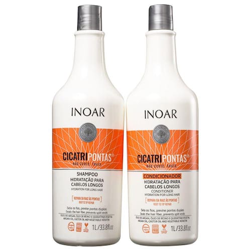 - Inoar Cicatripontas - Shampoo 1000ml: limpa de maneira delicada e eficiente. Também hidrata os cabelos e assegura toque suave e mais maleabilidade.