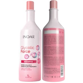 Este anúncio contém: 01 (um) Kit Glycolic Force - Inoar Conteúdo da embalagem: 01 (um) Shampoo 1L 01 (um) Condicionador 800ml 01 (uma) Máscara Capilar 500g