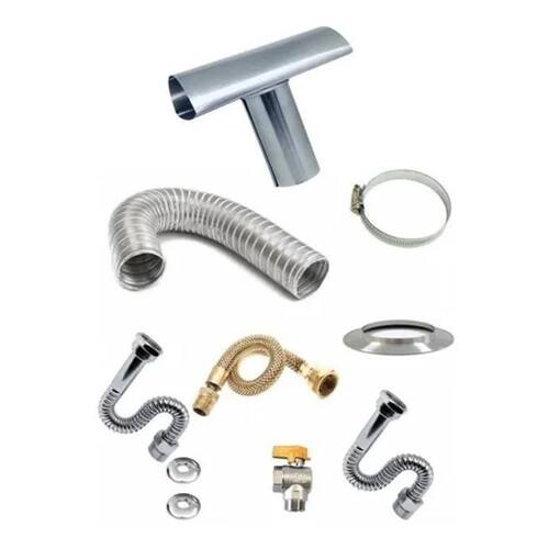 Kit Instalação Completo Compatível Com Aquecedor E27 Rinnai Contém 1,5m tubo chaminé, 1 chapéu T, 1 aro de arremate, 1 braçadeira 02 flexíveis de água 40cm, 01 flexível tombak 40cm e 01 registro esférico Marca: Não Informado